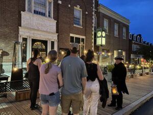 The tour starts at the Statue of Nathaniel Hawthorne near the Hawthorne Hotel. Then for the next one and half hour or so we will walk the streets of Salem hearing tales of the Supernatural! Follow your vampire and his lantern, and experience these accounts. It’s an evening you won’t forget!